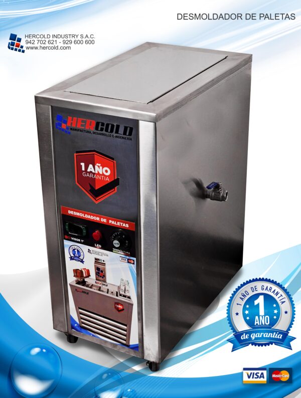 El sistema de calentamiento eléctrico que incorpora nuestro equipo desmoldador permite calentar el agua de +10°C a +40°C en una temperatura regulable; permitiendo mantener el nivel de calor y facilitando la rápida extracción del molde al realizar el choque térmico, presenta un panel de mandos con visor de temperatura y un termostato Automático para facilitar su uso.